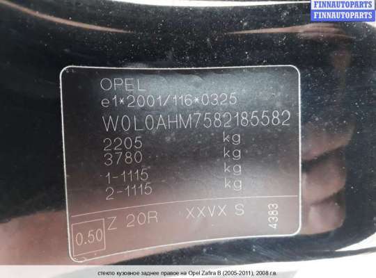 Opel Zafira B | 2011 | артикул стекла 5161486 зад право |